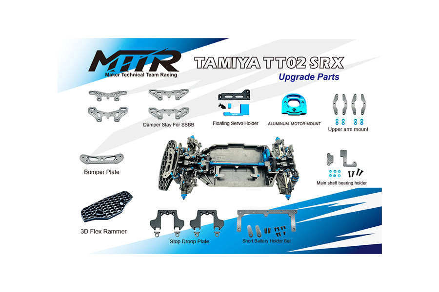 -Carbon Front Rear Damper Stay Set SSBB -Carbon Front Rear Damper Stay Set -Carbon Down Stop Droop Plate -Carbon Main Shaft Bearing Holder (Front & Rear) -Carbon Upper arm mount (4pcs) -Carbon Short Battery Holder Set -Carbon Battery Plate -Carbon Bumper Plate