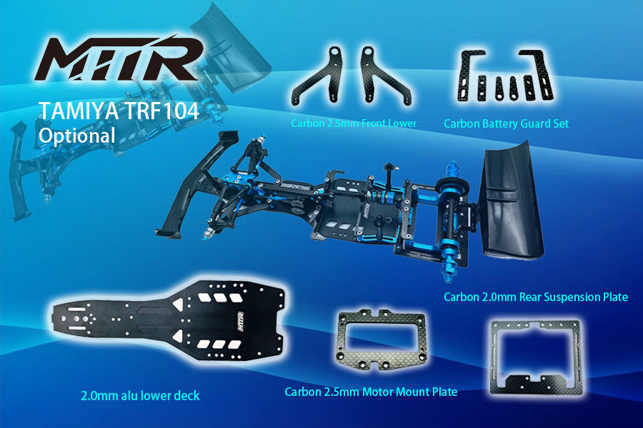 -Carbon Front Rear Damper Stay Set SSBB -Carbon Front Rear Damper Stay Set -Carbon Down Stop Droop Plate -Carbon Main Shaft Bearing Holder (Front & Rear) -Carbon Upper arm mount (4pcs) -Carbon Short Battery Holder Set -Carbon Battery Plate -Carbon Bumper Plate